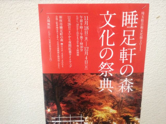 今月18日(金)から、新座市にて「睡足軒の森文化の祭典」が始まります。